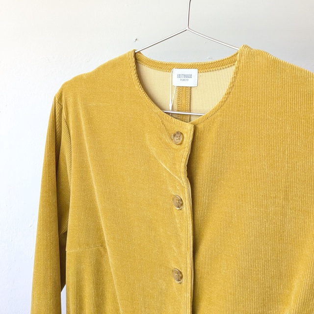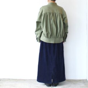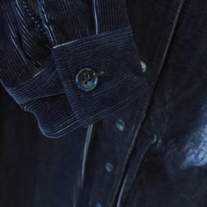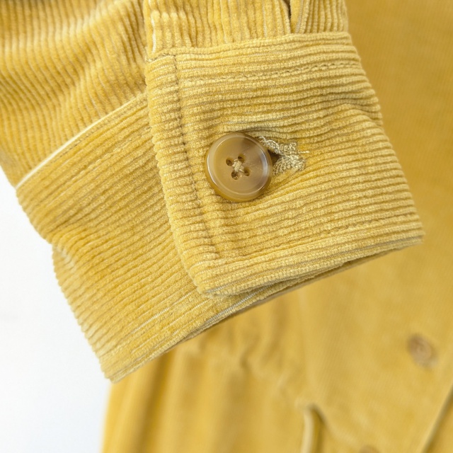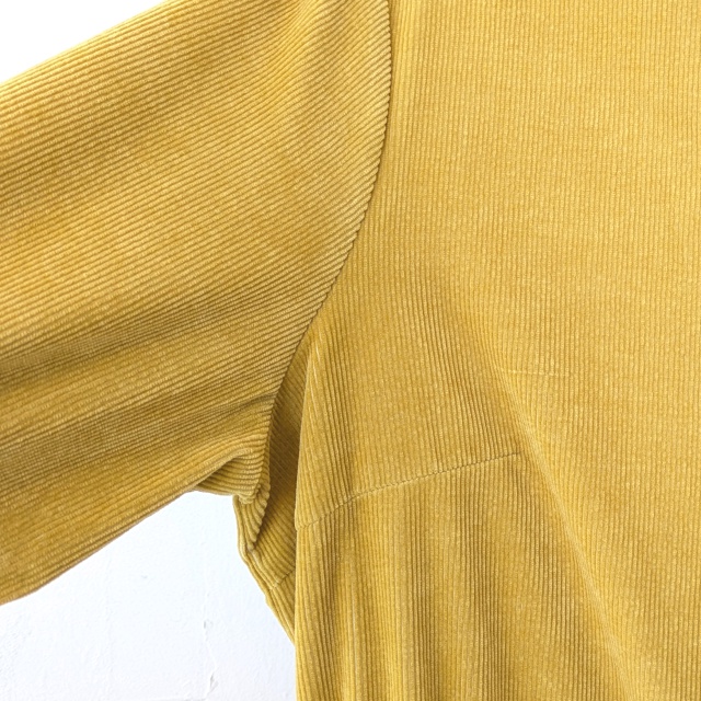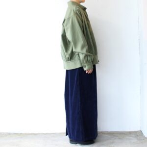 パイル部分に綿レーヨンの混紡糸を、縦糸にポリエステル・ポリウレタン糸を使用することで、固くなりがちなコーデュロイ素材をとても柔らかな風合いに仕上げています。