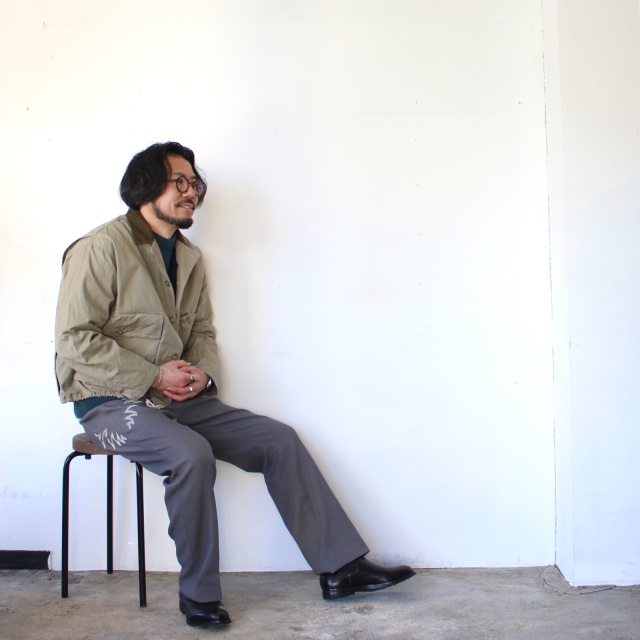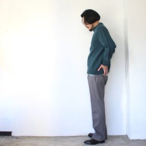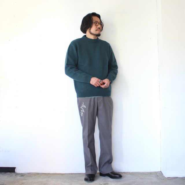 すっきりとしたワタリから膝部分を少し絞り、そこから裾にかけて僅かにフレアを入れる事で非常に綺麗な微(美)シルエットに仕上げている。