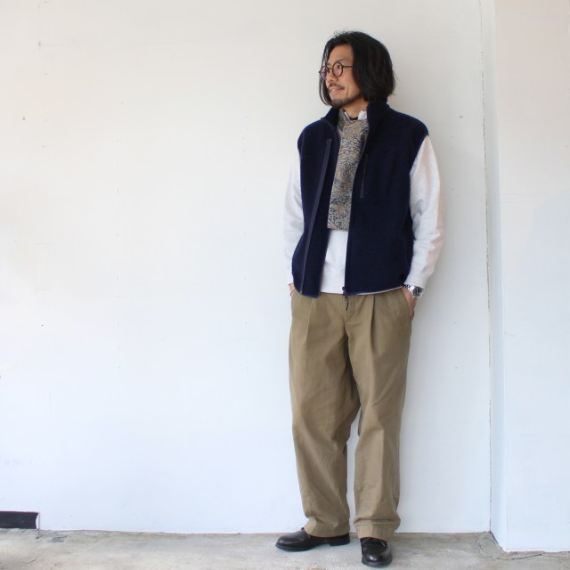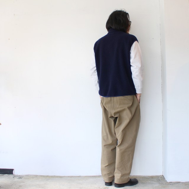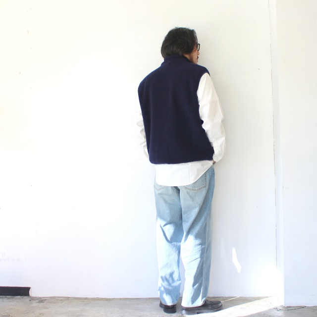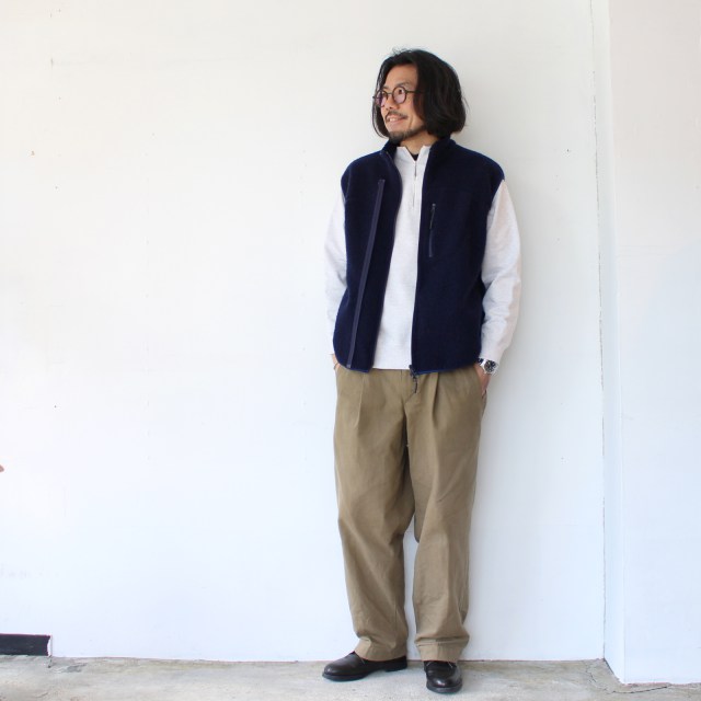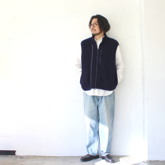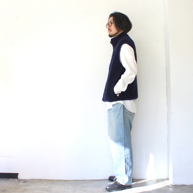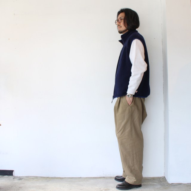 日本に3台しかない希少な丸編み機を使い、ゆっくりと空気を含んだようにふっくらとしたウールパイルの着心地は秀逸。