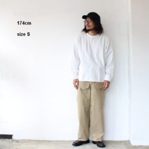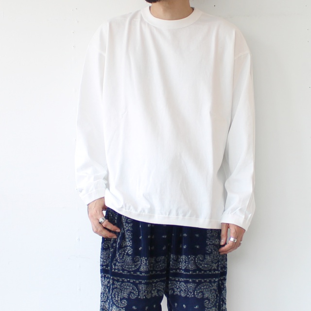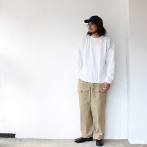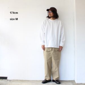 さらに通常だと18ゲージで編み立てるところを、22ゲージで編み立てた度詰め天竺は、ハリがあり着用ごとの経年変化も楽しみなカットソーに仕上がっています。