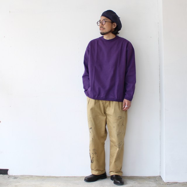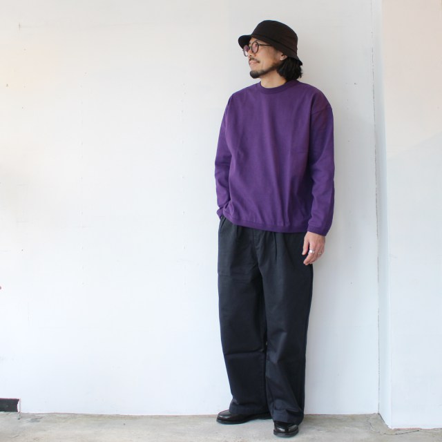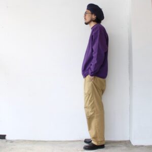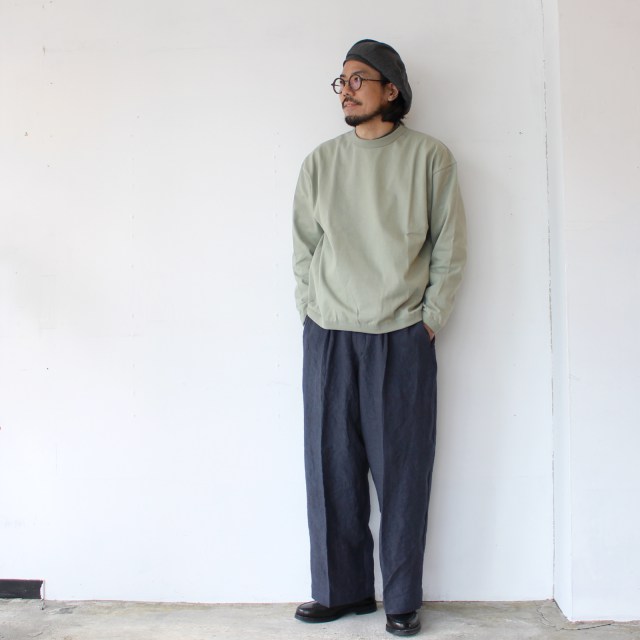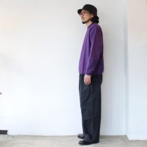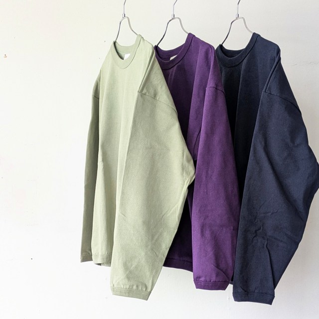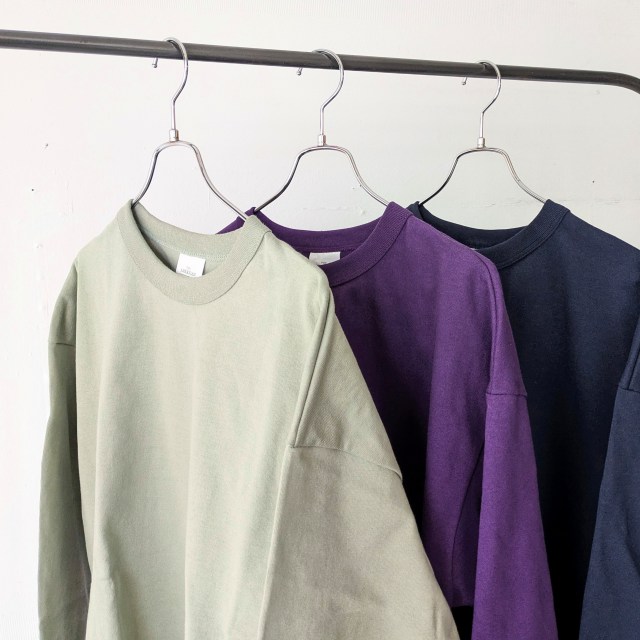 さらに通常だと18ゲージで編み立てるところを、22ゲージで編み立てた度詰め天竺は、ハリがあり着用ごとの経年変化も楽しみなカットソーに仕上がっています。