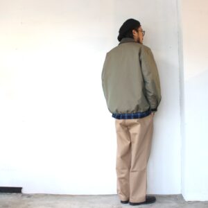 コーデュロイで切り替えた襟にはチンフラップも備えており、寒風の厳しい時にはスタンドネックにして凌ぐことも。