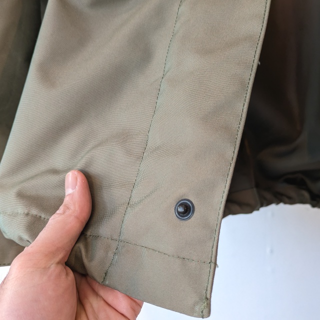 袖口にはベルクロアジャスター、左右の裾にはドローコードを備え、好みのフィット感に調整可能。