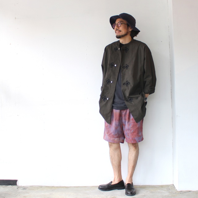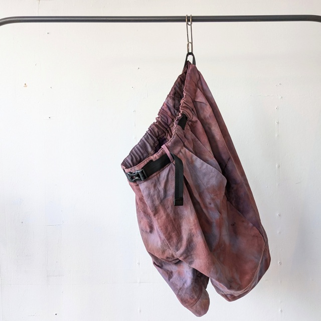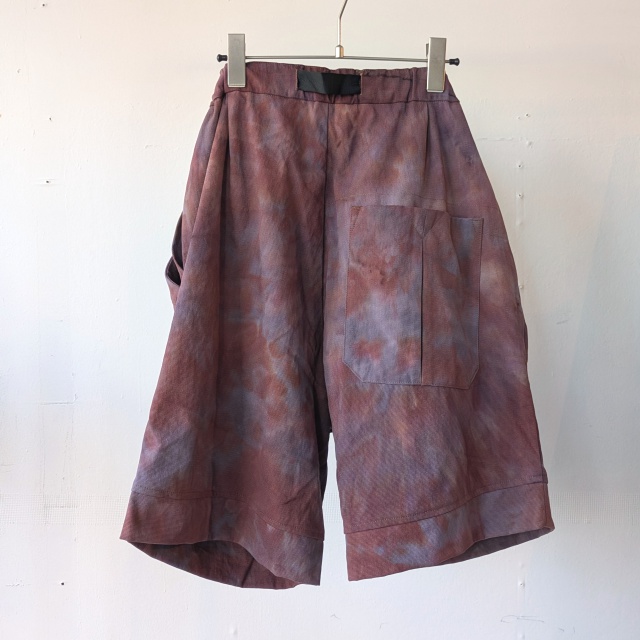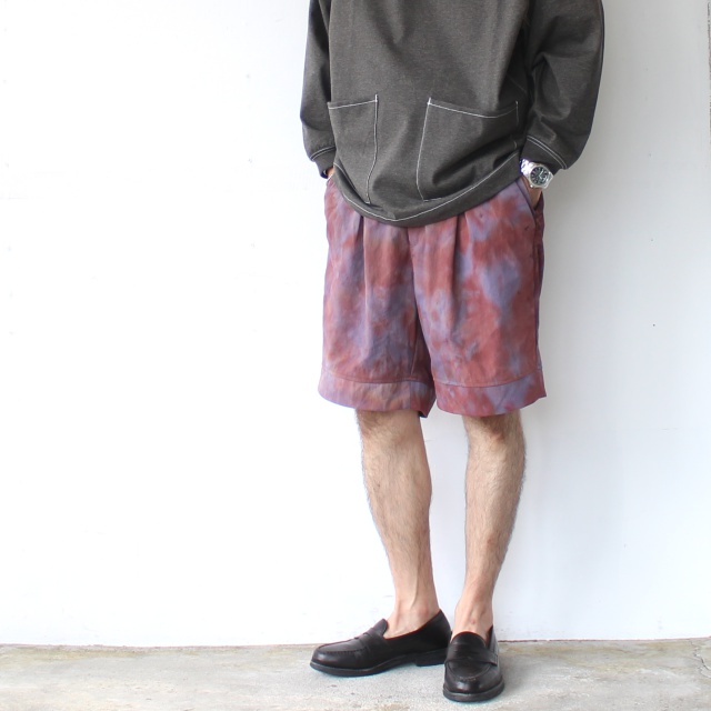 ハンドメイドのムラ染めナイロン生地を採用したショートパンツ。