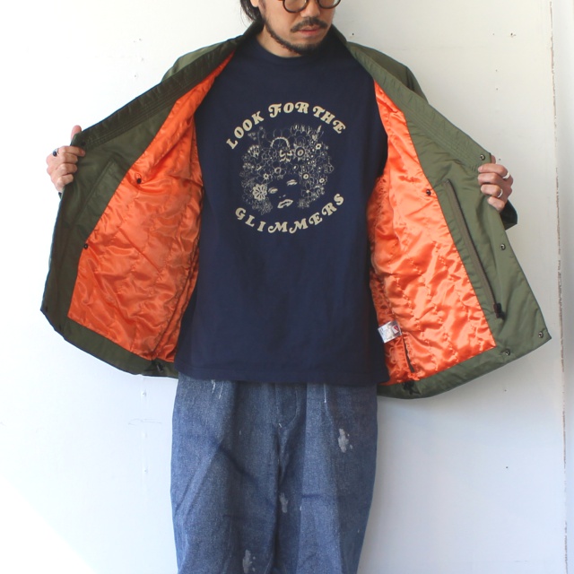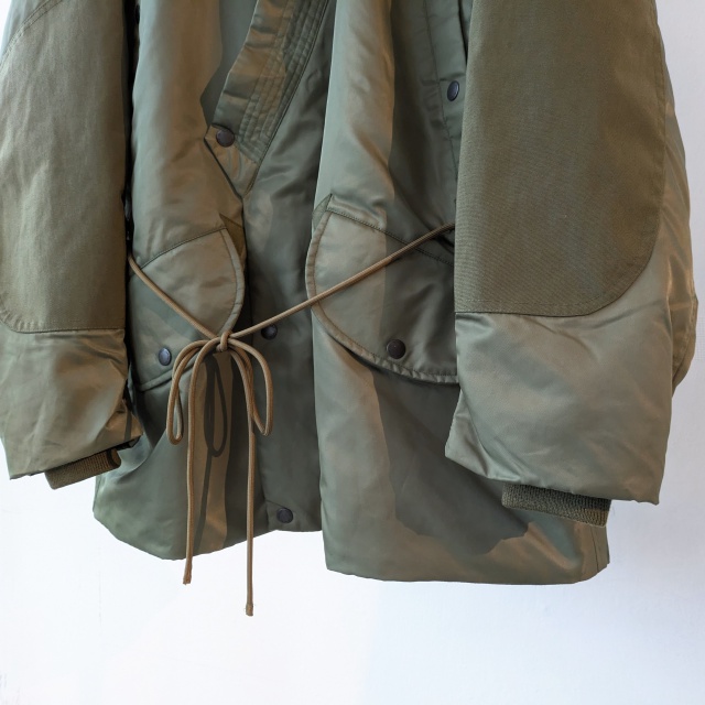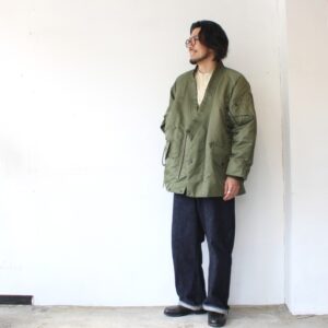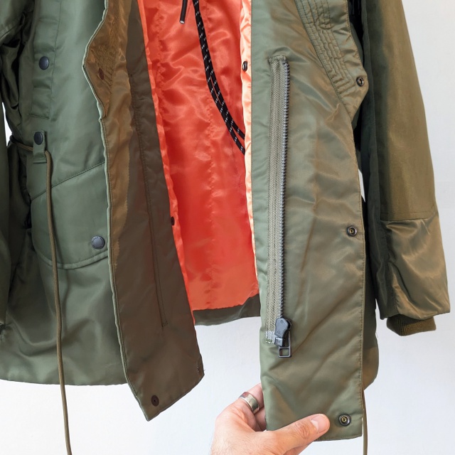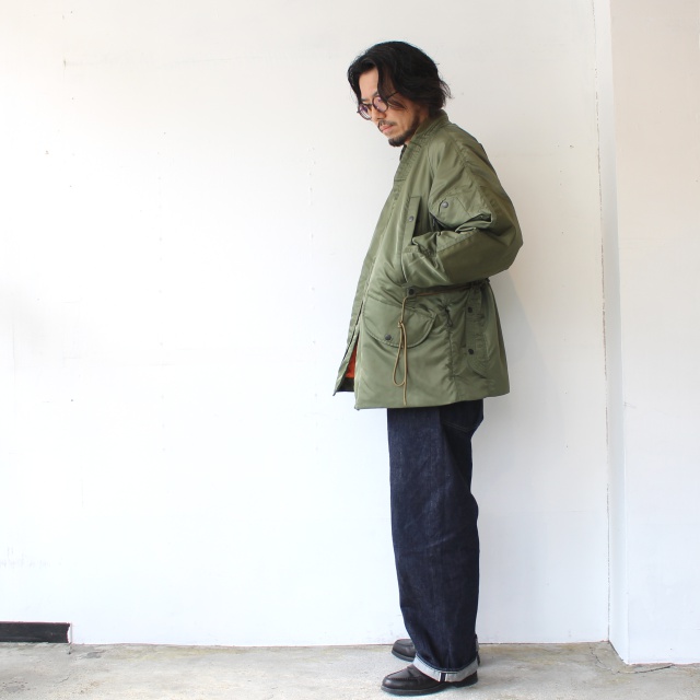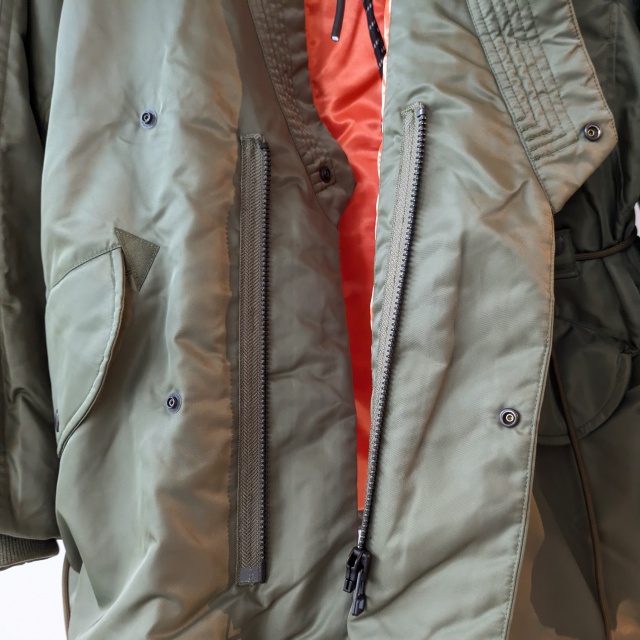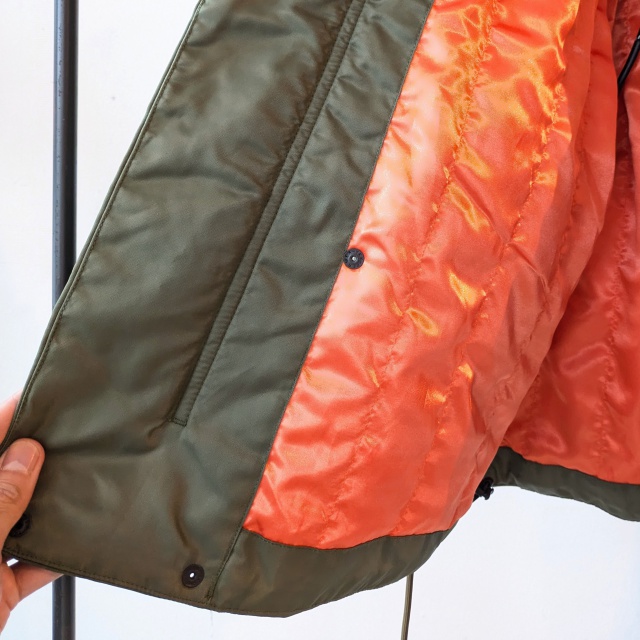表地、裏地はアルファーインダストリーズ社N3Bに使用されているオリジナル素材を使用し、中綿にはプリマロフト、防寒着としてのハイテク機能素材を使用しています。