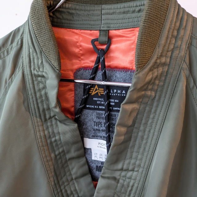 アルファの定番「N3Bジャケット」とnorbitの定番「サムエ(作務衣)ジャケット」をミックスした完全オリジナルコラボが完成。