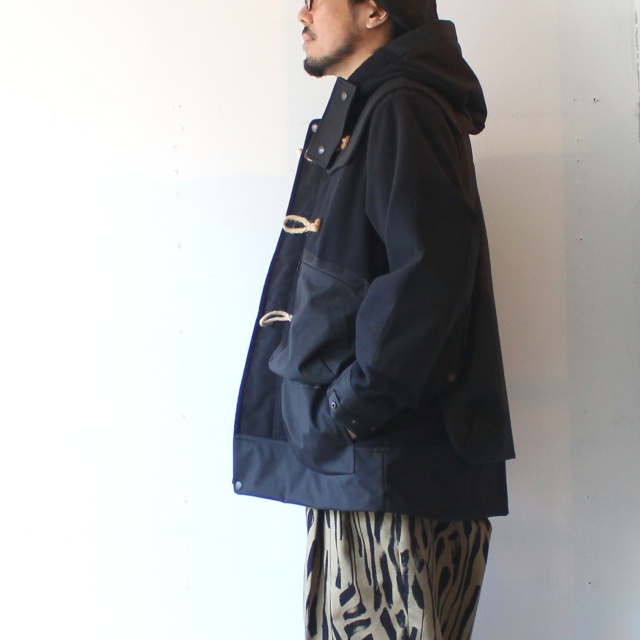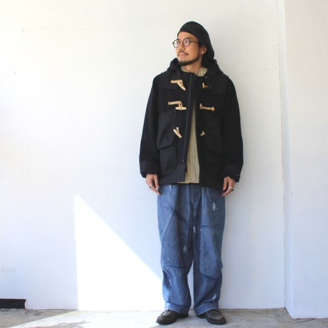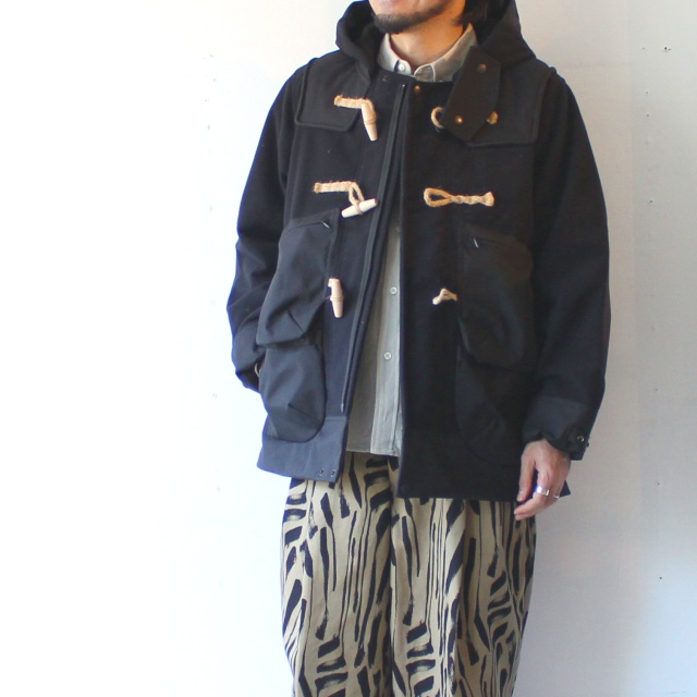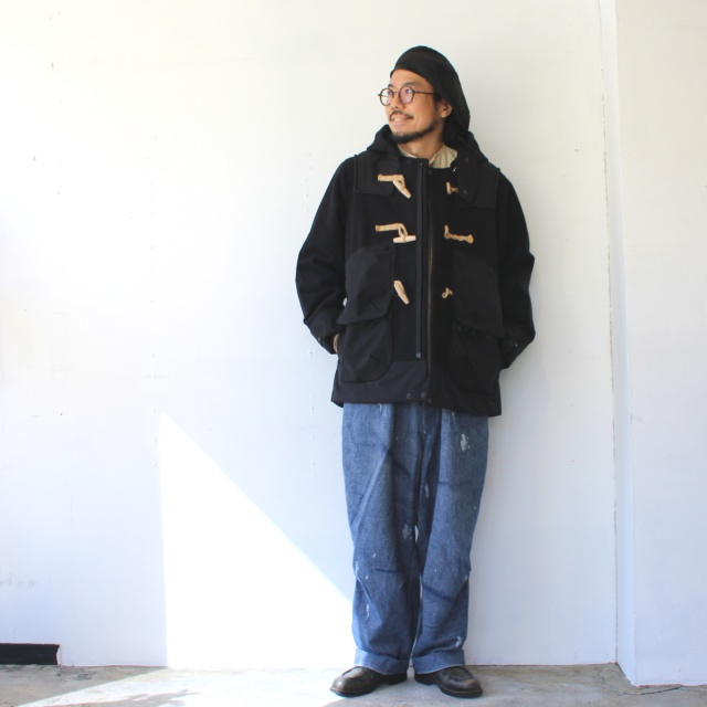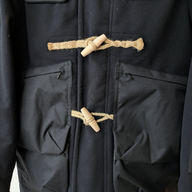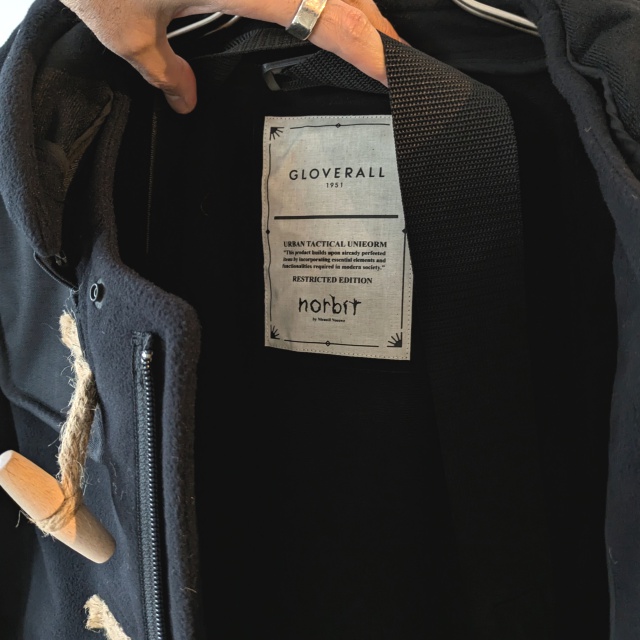 英国グローバーオール社の代表作でもあるモンティダッフルコートに、norbitの解釈でテック素材をMIXしたコラボレーションアイテム。