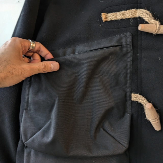 ポケット、エルボーパッチ、フード上部パーツなどにはコーデュラナイロン(ダック裏PUコーティング)を使用しています。