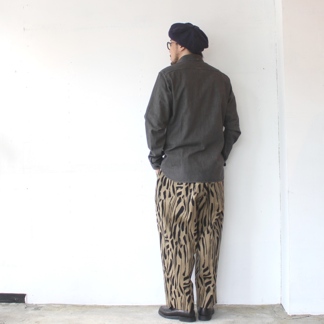 ワークシャツのディテールをベースに、丁寧な縫製や縦のラインが綺麗なシルエットでドレスシャツのような雰囲気も感じられるOrgueilらしいシャツに。
