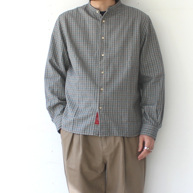 ■ ネルチェックバンドカラーシャツ Check Stand-up Collar Shirt