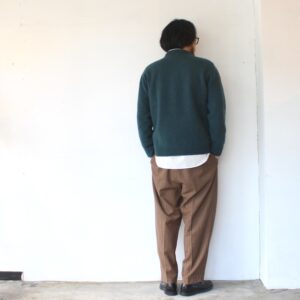 ボタンは茶系の貝ボタンで上品なアクセントを。