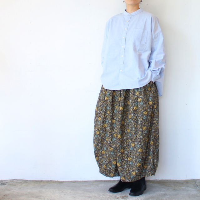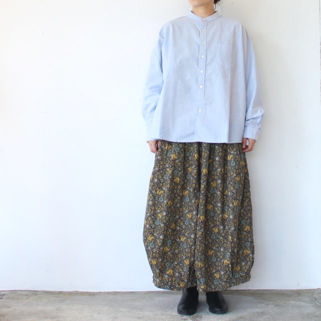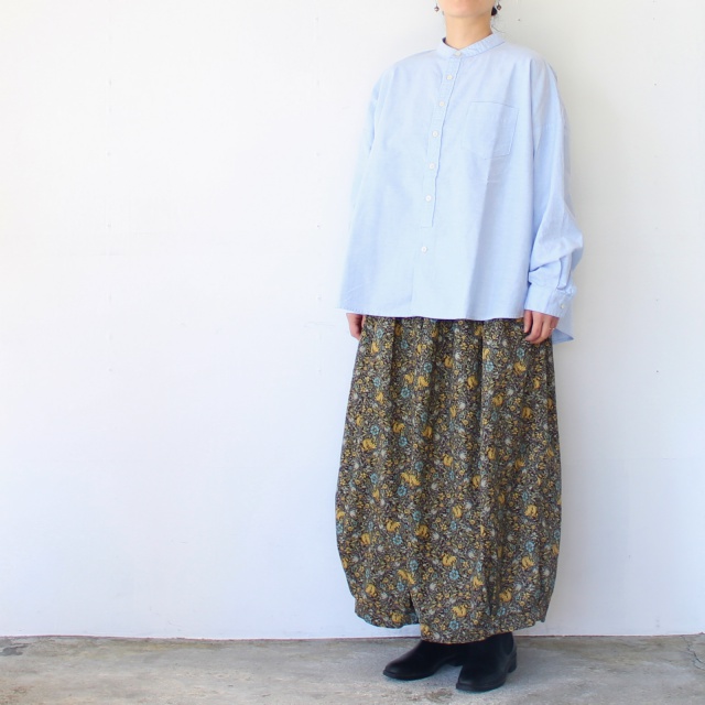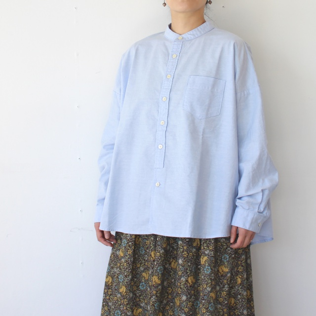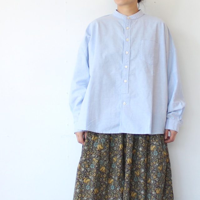 バンドカラーに緩やかなシルエットのワークシャツ。