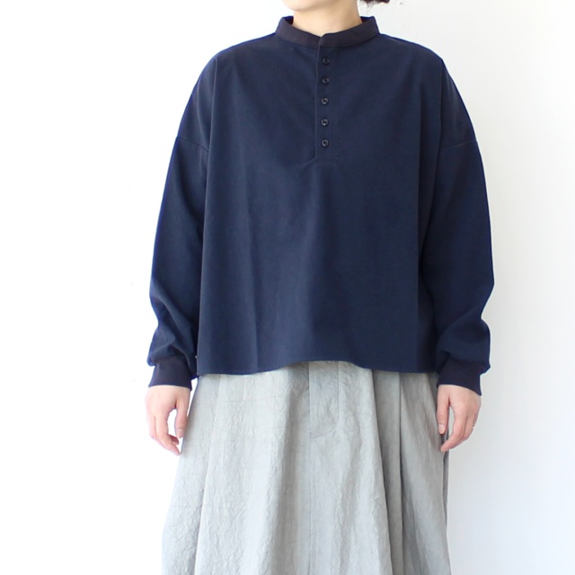 京都の東焚きで染めたアンティークバーバリーを使用したプルオーバーシャッツ。