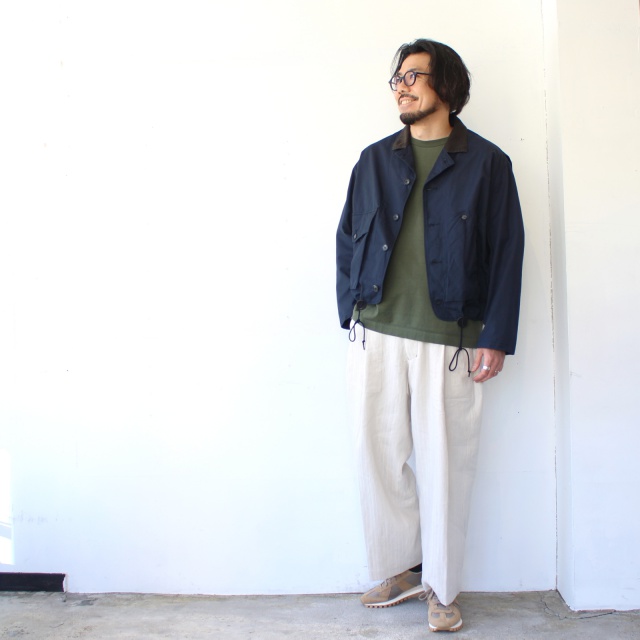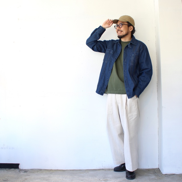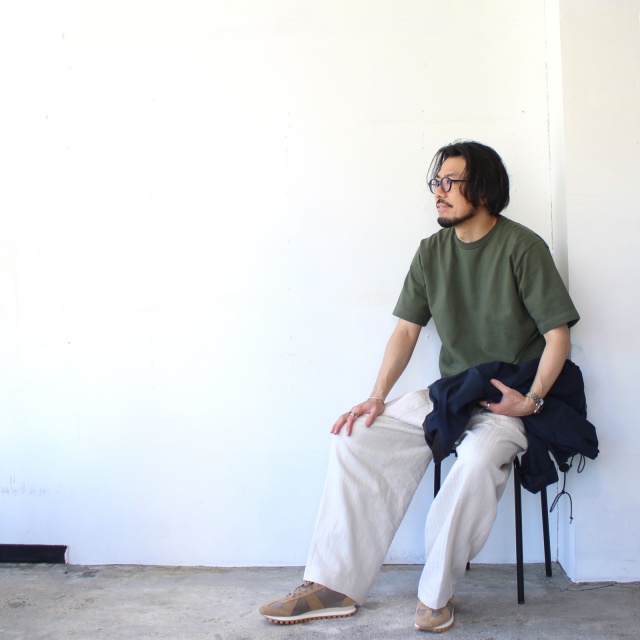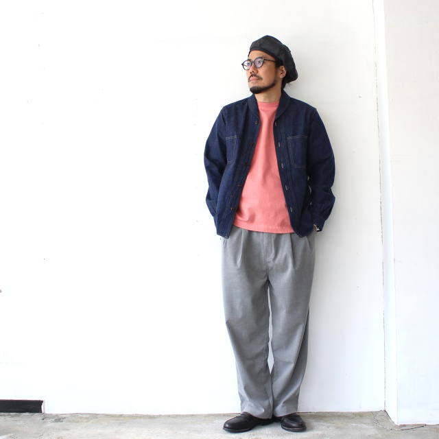 さりげないムラ感のある色みはこの生地ならではで、いい意味での素朴な風合いも感じられます。高いクオリティと、気負い過ぎない馴染み感がうまくミックスされています。