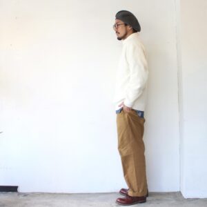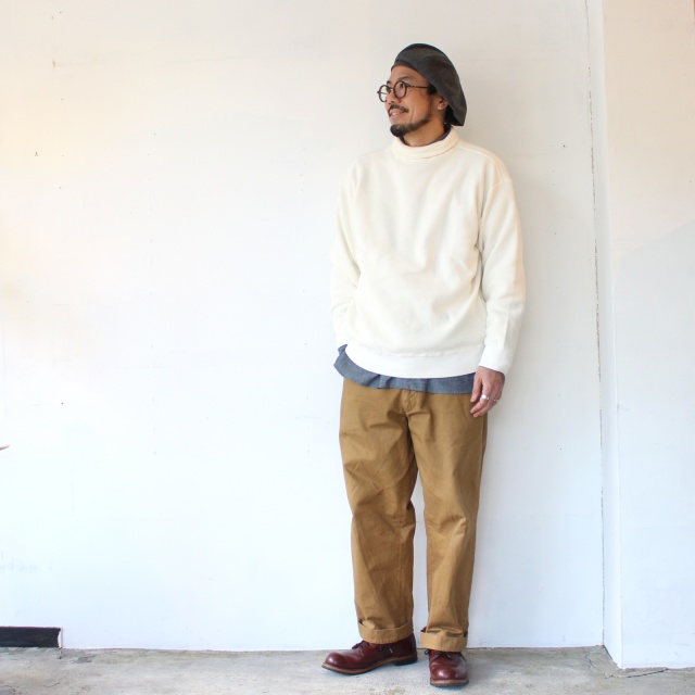 上質な綿100%を使用し、肌触りはチクチクせず、スウェットの延長のようなイメージでも楽しめます。