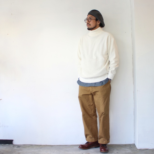 ■ 裏起毛畦編みハイネックコットンニット Brushed rib stitch high collar knit