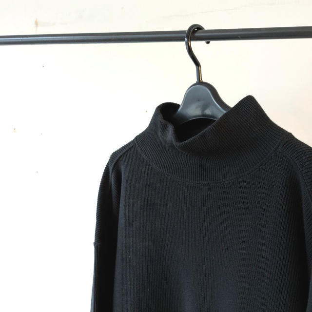 Siora 裏起毛畦編みハイネックコットンニット Brushed rib stitch high collar knit (Ink black)