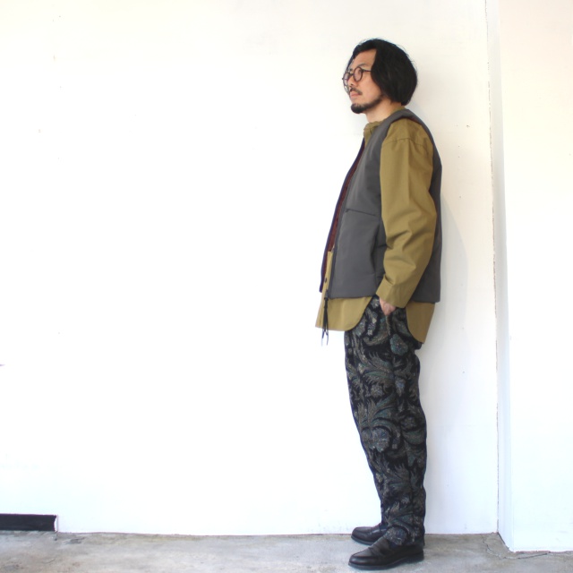フロントの大きめポケットが特徴的なシャツ生地の羽織。