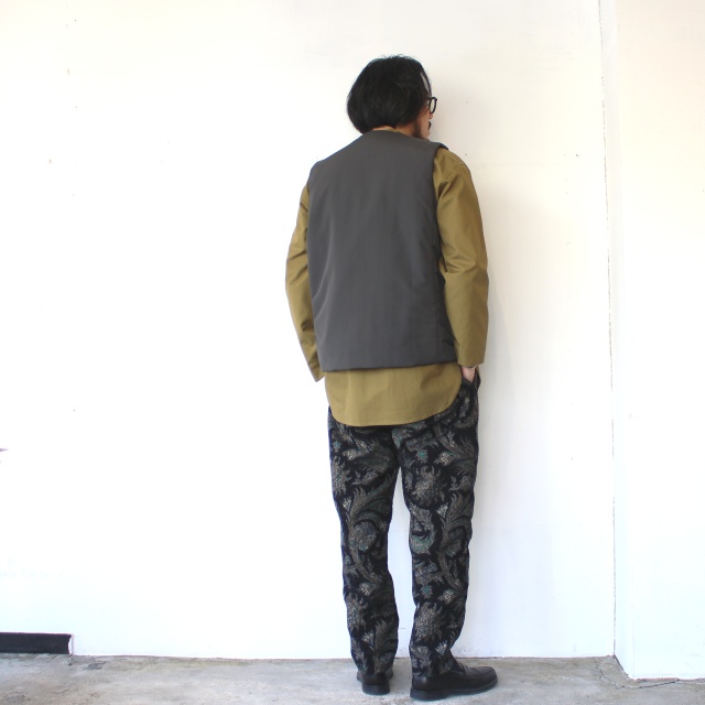 通常のシャツ生地よりもハリのある質感に仕上がっています。