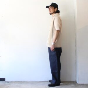 ストレッチ入りで、さらにポリエステルをわずかに混紡することで軽くてシャリ感のあるデニムに仕上がっています。