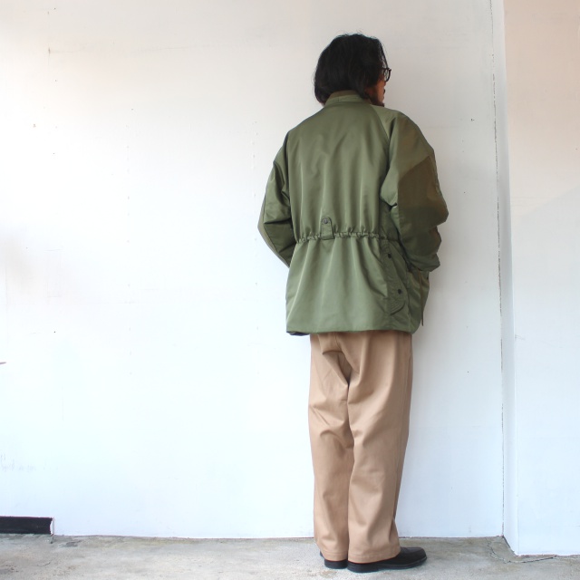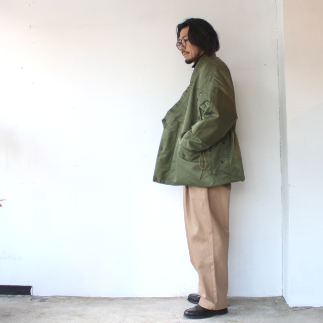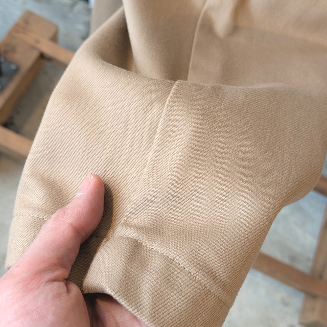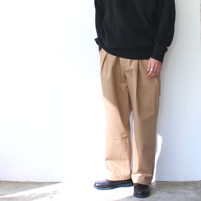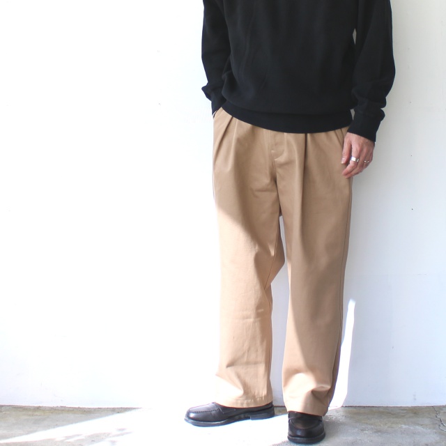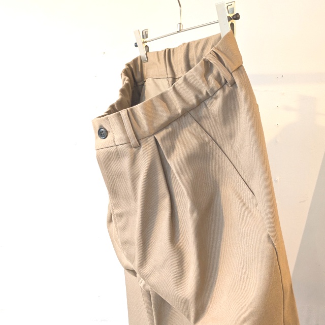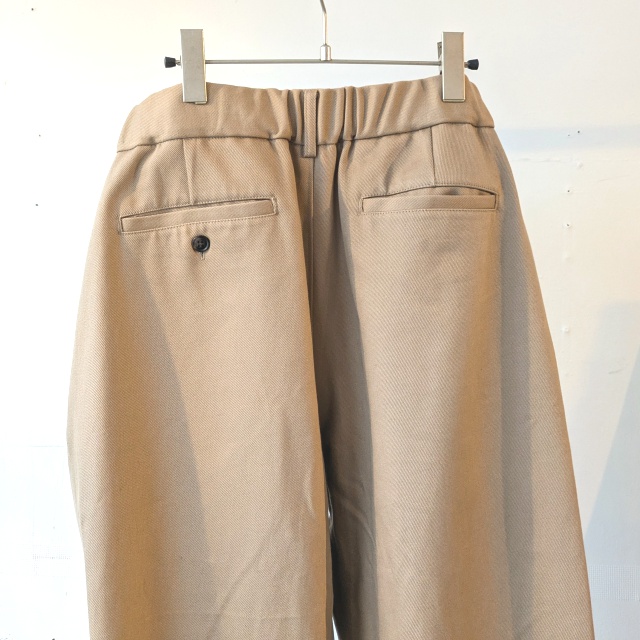 日本国産の綿カツラギ(太番手糸の綾織り生地)を使用したタックワイドトラウザー。
