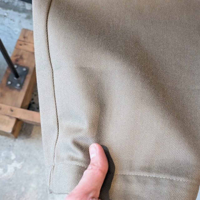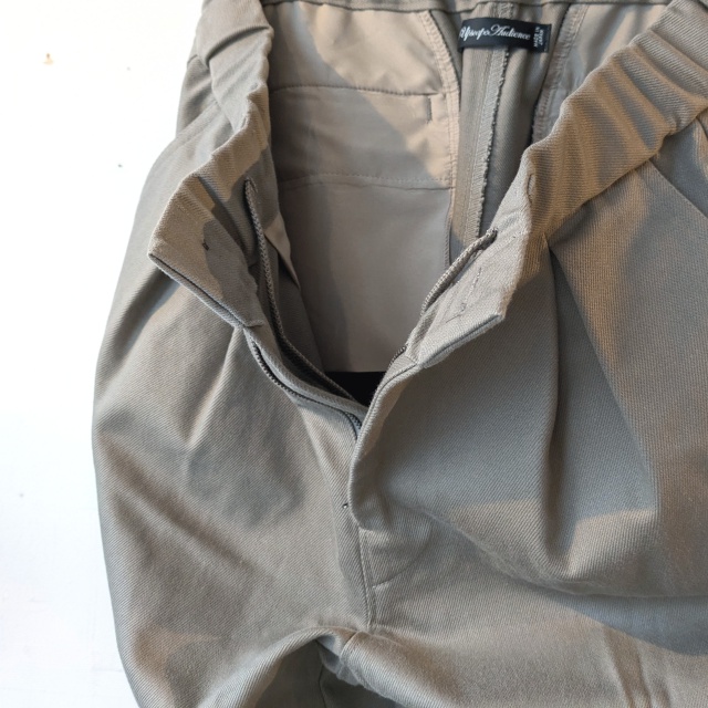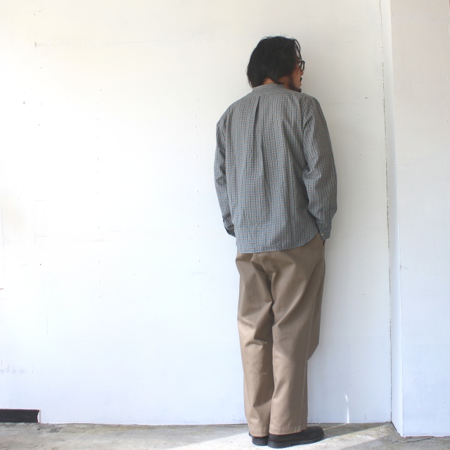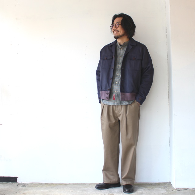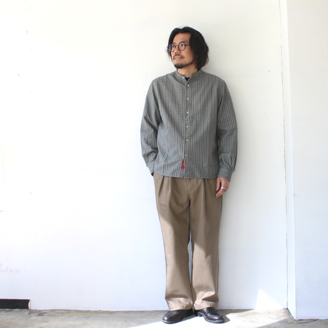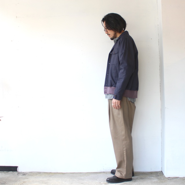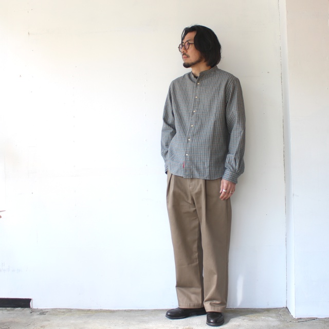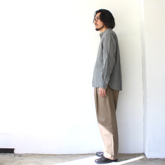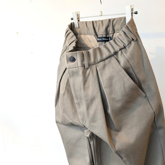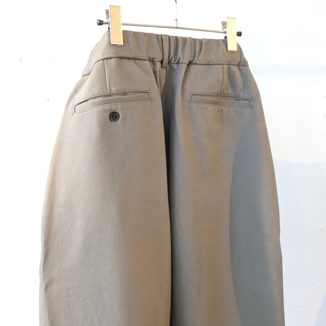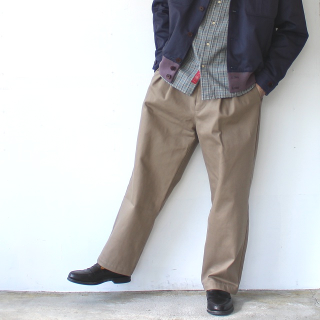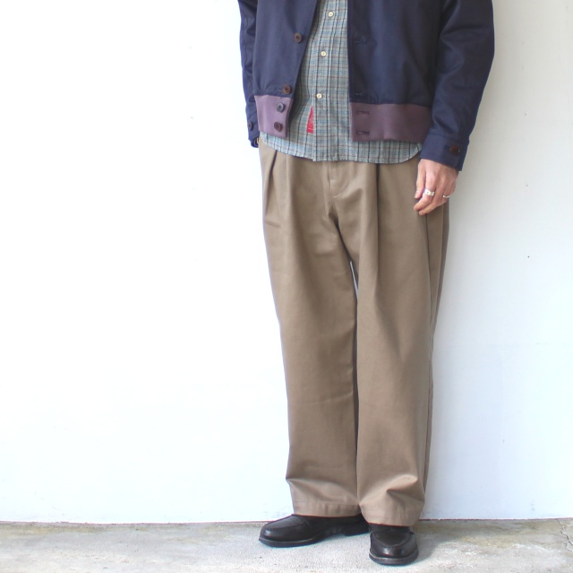 日本国産の綿カツラギ(太番手糸の綾織り生地)を使用したタックワイドトラウザー。