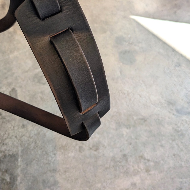 レザーは姫路産ベジタブルタンニンレザーを使用し、トラディショナルな手染め製法で染め上げました。