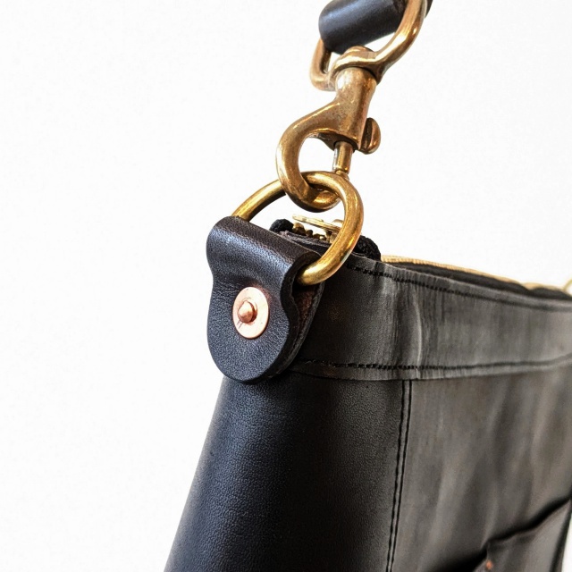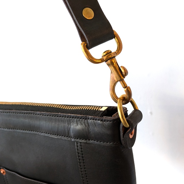 伝統的な鋳物や真鍮無垢の金具も皮革に合わせてエンジング加工しました。レザーと共に経年変化を楽しめます。