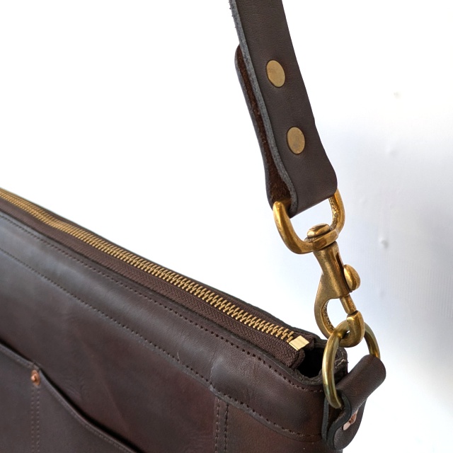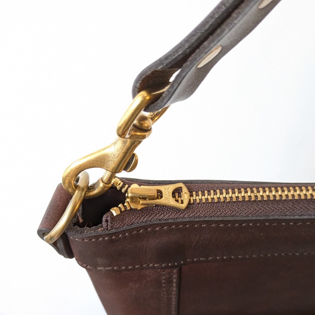 伝統的な鋳物や真鍮無垢の金具も皮革に合わせてエンジング加工しました。レザーと共に経年変化を楽しめます。