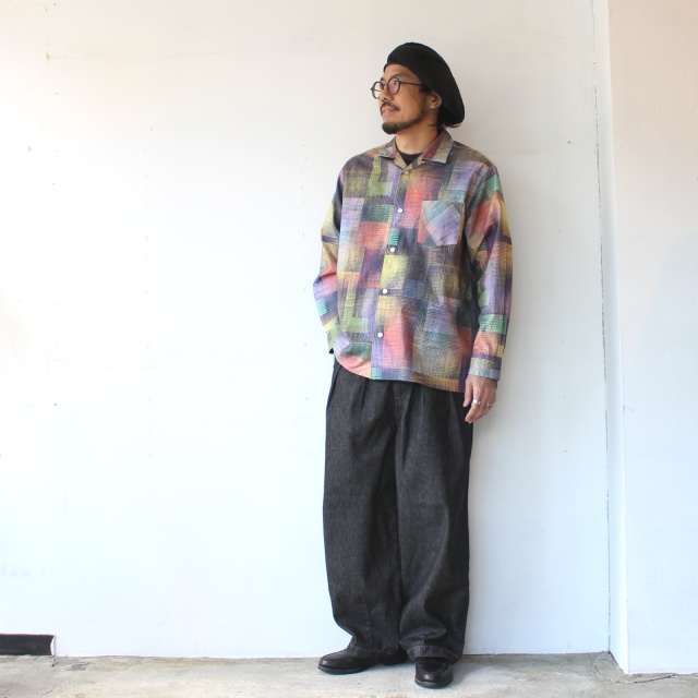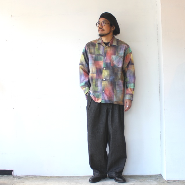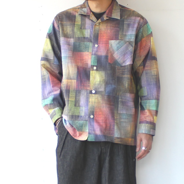 weac. マルチカラーチェックオープンカラーシャツ RAINY BLUE (Multi Color Check)