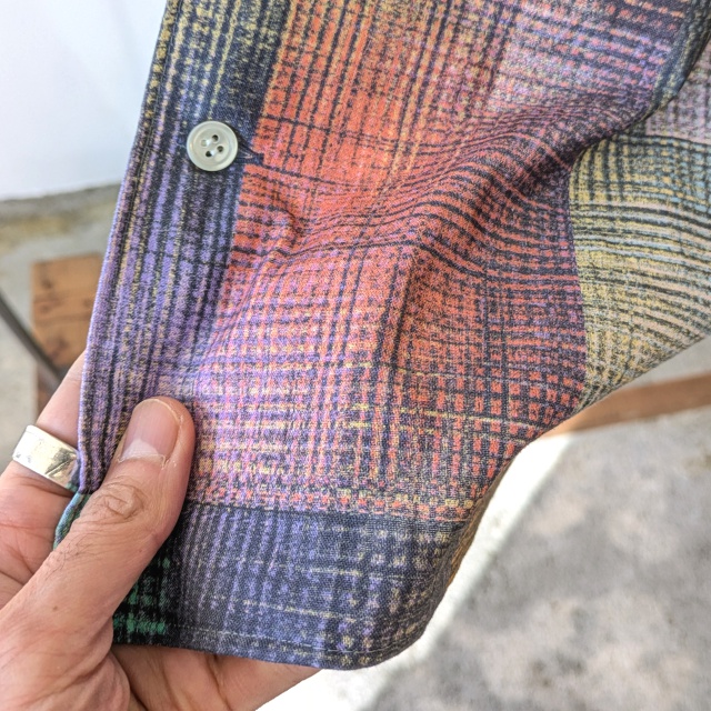 多配色でもややぼかしたような格子がポイントで、派手過ぎず絶妙な主張感のシャツです。