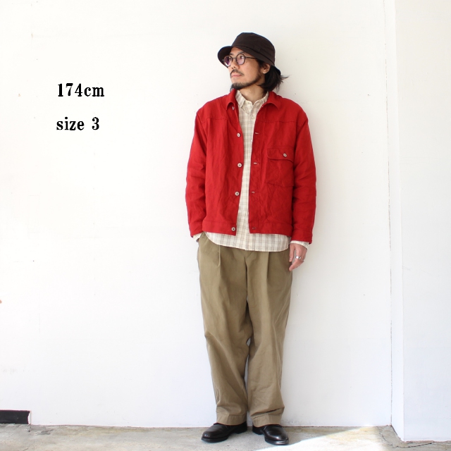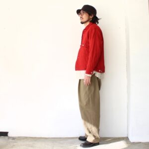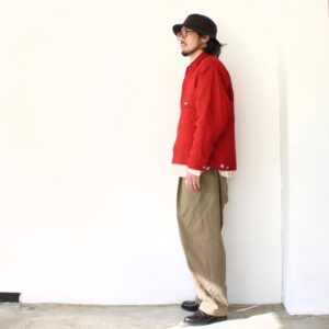 シンチバックやプリーツなどは無くし、よりミニマルなワークジャケットに仕上がっています。(サイドアジャスター仕様)