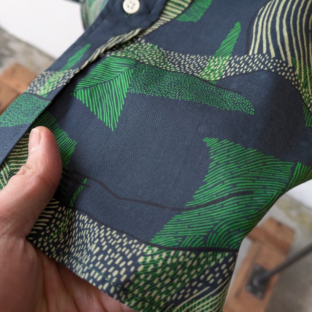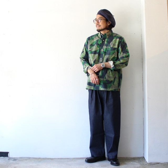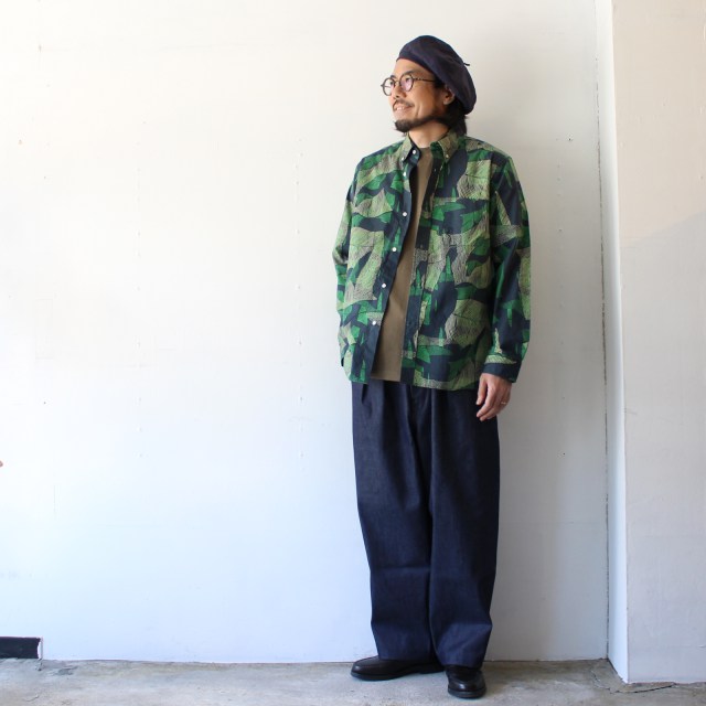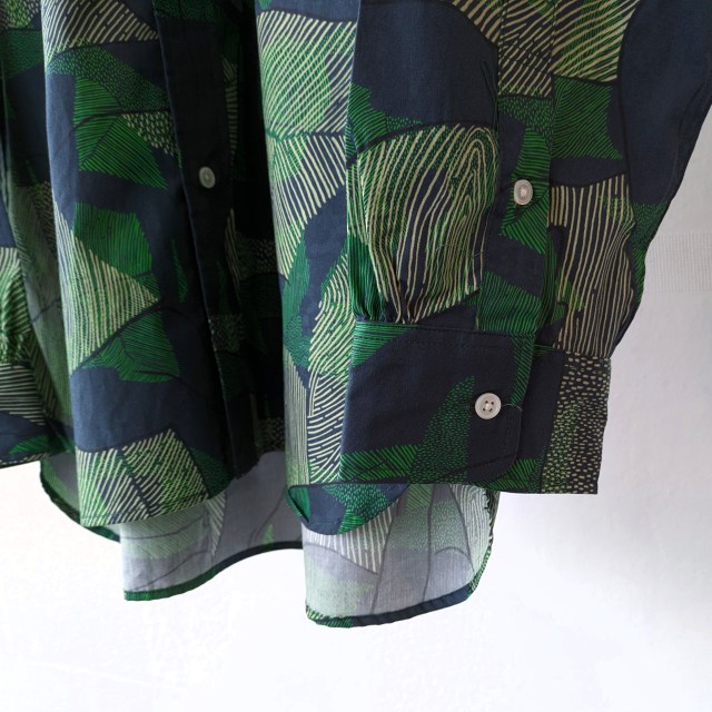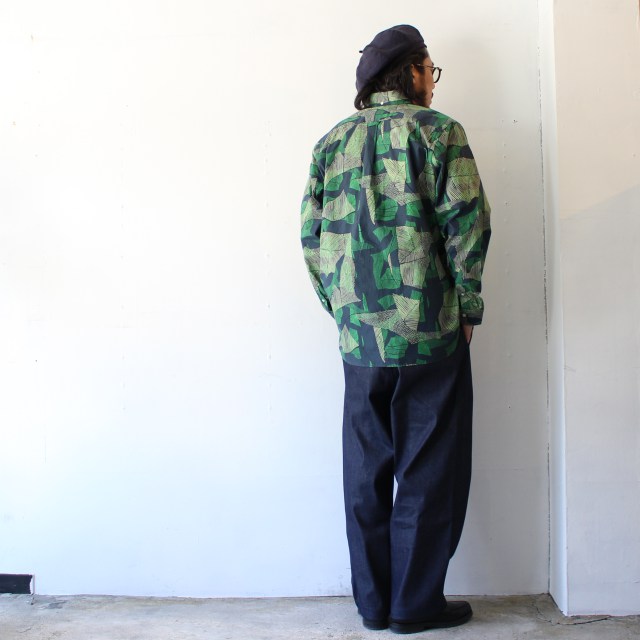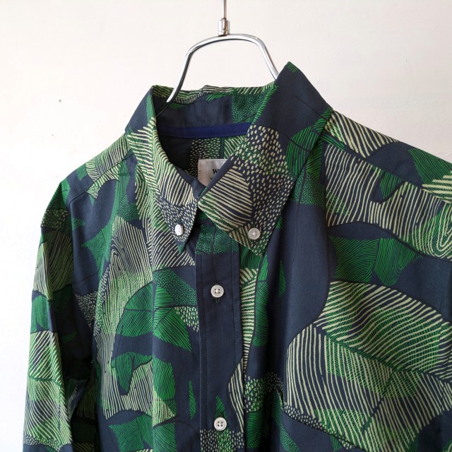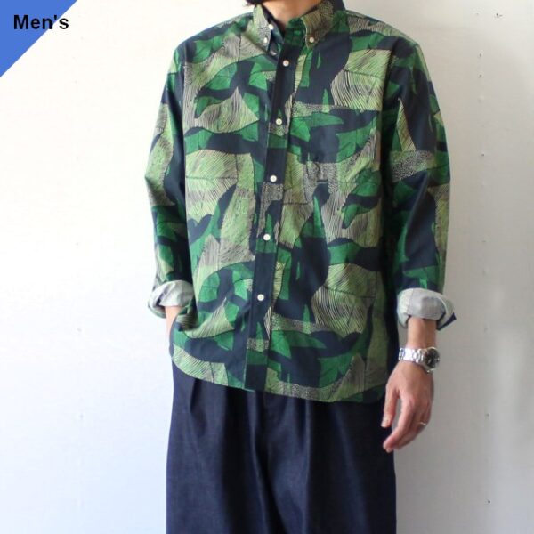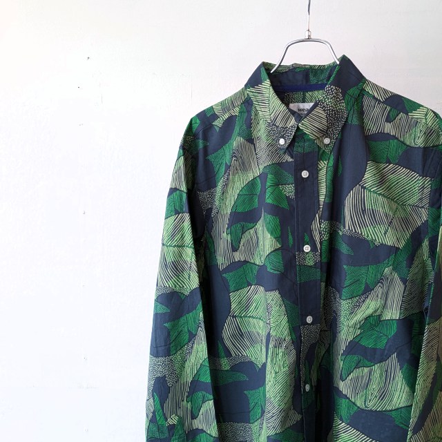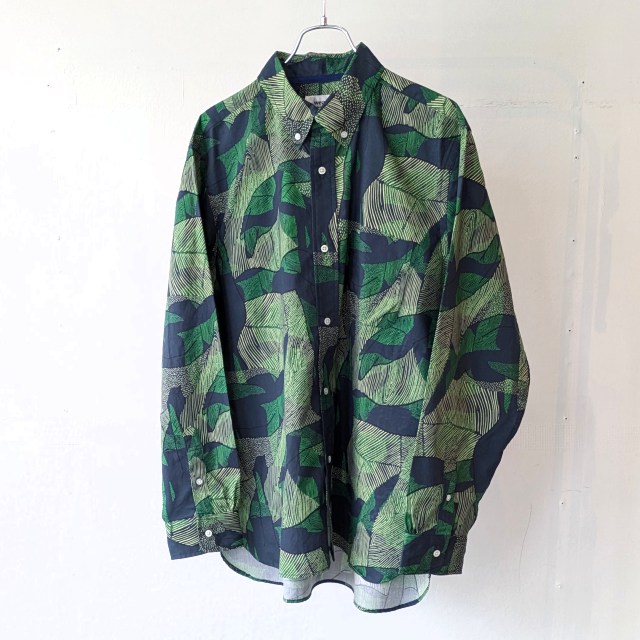 ボタニカル調グリーンが鮮やかな総柄シャツが入荷。