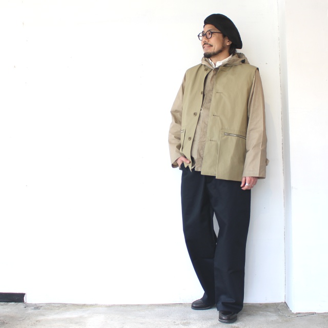 Men's Styling Vol.896「ベージュジャケット×グリーンシャツ×ブラックワイドパンツ」